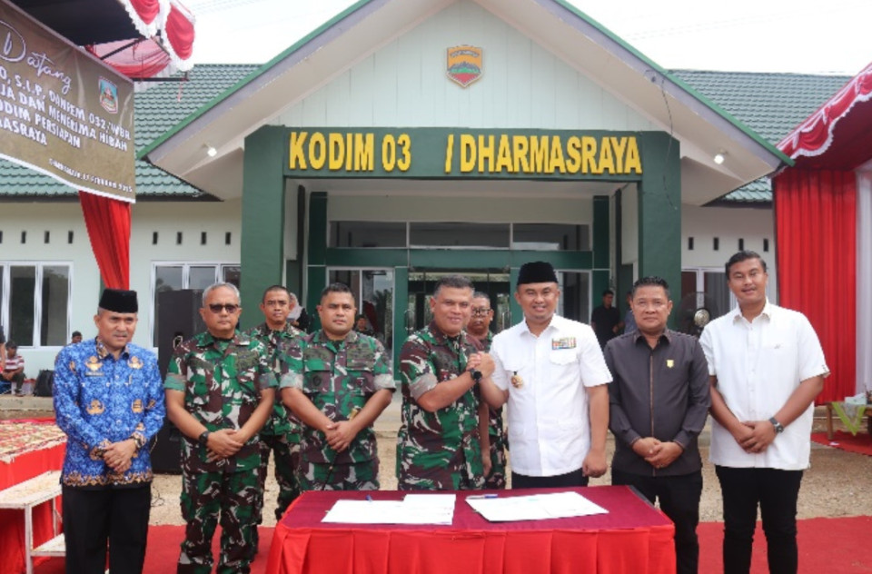 KAJANGLAKO.COM, DHARMASRAYA - Penyerahan bangunan Kodim Penghubung Dharmasraya yang dihadiri oleh Danrem 032 Wirabraja Brigjen TNI Wahyu Eko Purnomo S.I.P sukses digelar di Kantor Kodim Nagari Koto Padang, Kecamatan Koto Baru. Senin (17/02/25).