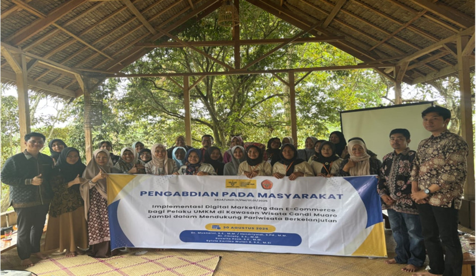 Muara Jambi, 30 Agustus 2025 — Fakultas Ekonomi dan Bisnis Universitas Jambi mengadakan kegiatan Program Pengabdian kepada Masyarakat (PKM) bertema “Implementasi Digital Marketing dan E-Commerce bagi Pelaku UMKM di Kawasan Wisata Candi Muaro Jambi dalam Mendukung Pariwisata Berkelanjutan.”